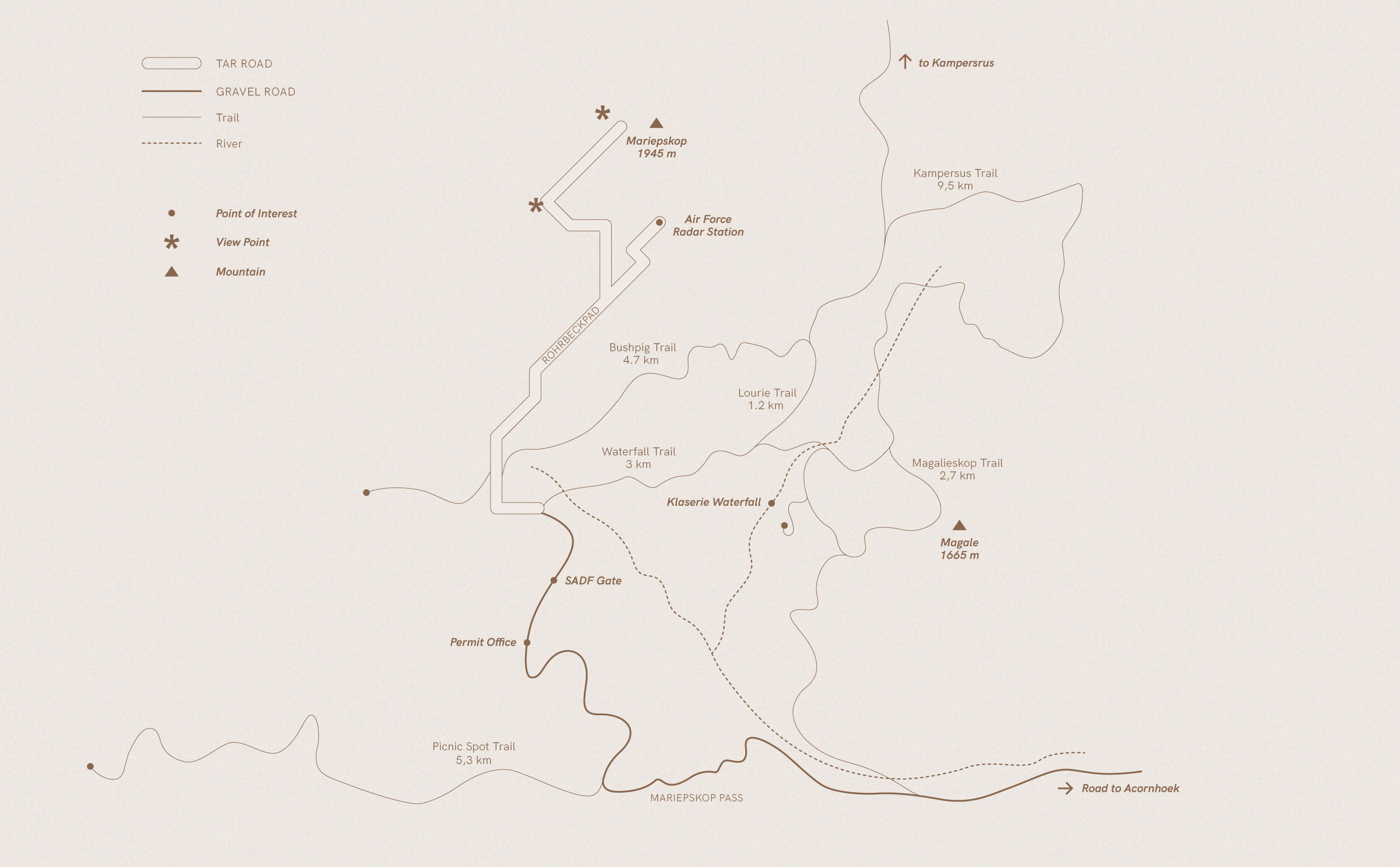 If you’d like to get in touch ahead of time for more information about the different hiking trails, permits, or the self-catering chalets, feel free to call.